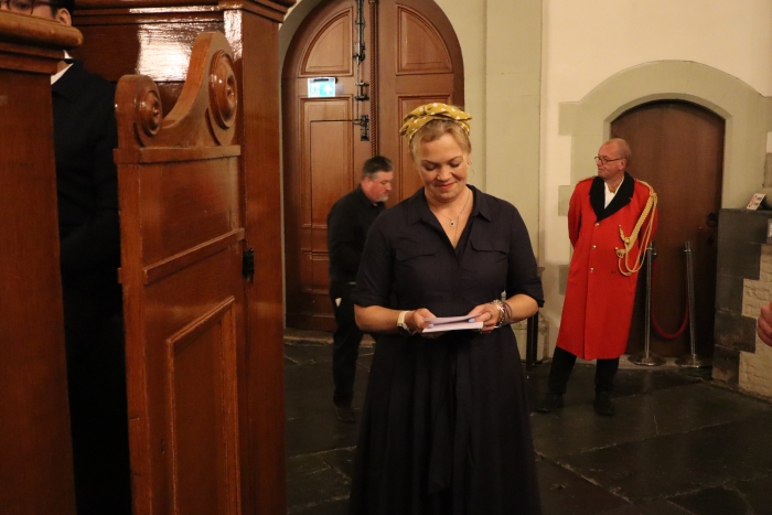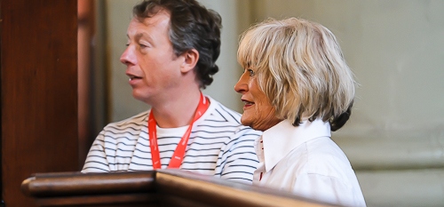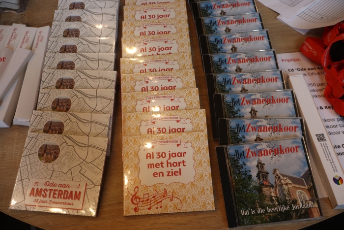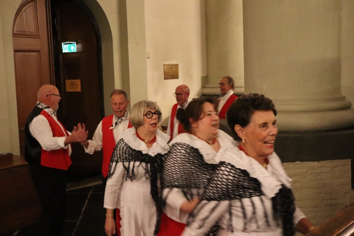 Maar er is nog iemand die ons opvalt. Dat is Martijn. Wat heeft hij samen met de projectgroep Amsterdam 750 een huzarenstukje neergezet! Ook vanavond zien we hem als een regisseur het publiek opzwepen, heen en weer rennen en even lijkt het zelfs alsof hij de kerk bouwkundig inspecteert. Je kunt het ook overdrijven, Martijn 😉. Maar wat doe je veel voor ons koor, het mag wel eens benoemd worden.