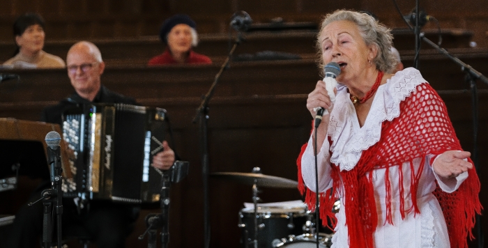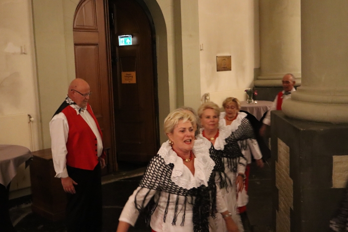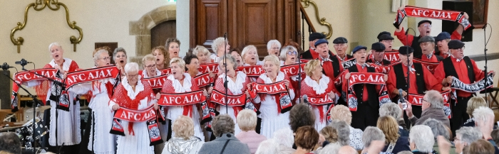 Het is een eer als we zelfs een bekende volkszanger tussen ons publiek zien, die zich gezellig voegt in de polonaise. Een dame in Ajax-tenue zingt gepassioneerd mee met de Ajax-potpourri en daarna barst het feest los. Er wordt ingehaakt, gezongen, geklapt en iedereen gaat zelfs bij de laatste nummers staan.
