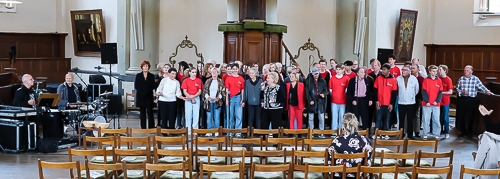 Edvart Niesing, kortgeleden nog presentator van onze voorstelling in het Zonnehuis, zit nu als gast vooraan. Hij is zichtbaar ontroerd, als we met het puberkoor de Hazes-potpourri zingen. Maar ook door Piet, ons oudste koorlid, die in een kerk met zijn luide, prachtige stem mensen kippenvel bezorgt. Dit keer niet van de kou, maar van Piet. Hij maakt diepe indruk. Wat kan die man toch zingen!