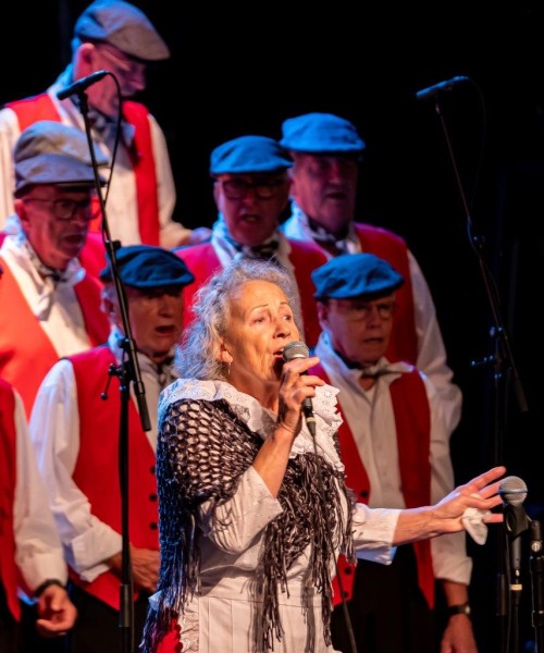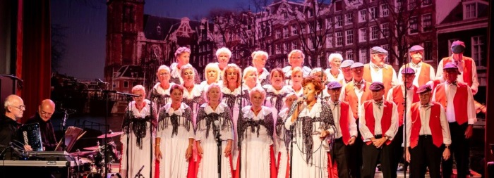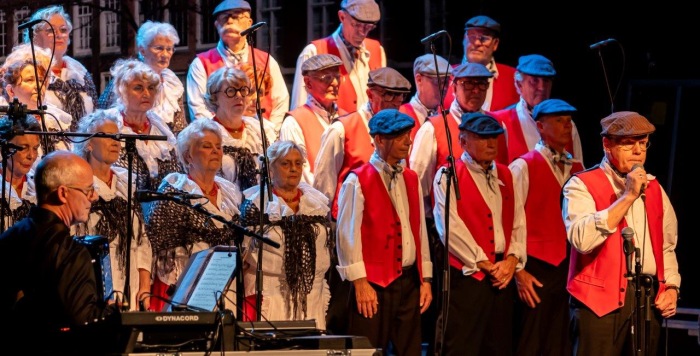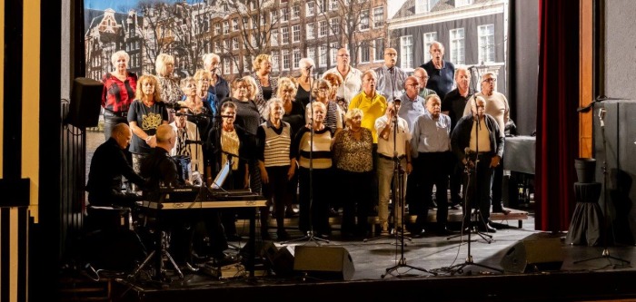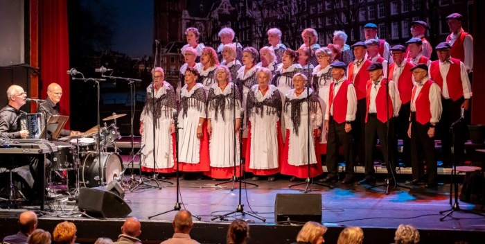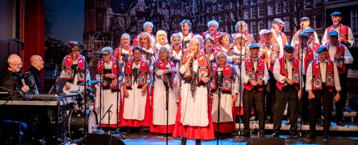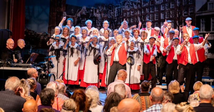 Na de Hazes-potpourri kon de avond niet meer stuk. Toen we “Geef mij maar Amsterdam” zongen, barstte er een waar feest los. Het publiek ging staan, danste en zwaaide uitbundig mee. We bedankten Edvart voor de presentatie en gaven hem een miniatuurbeeldje van “Het Lieverdje”. Wat een geslaagde avond!