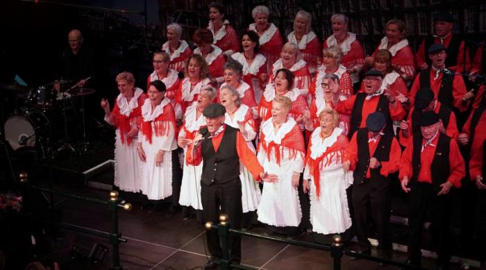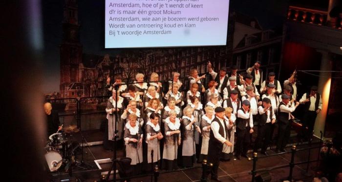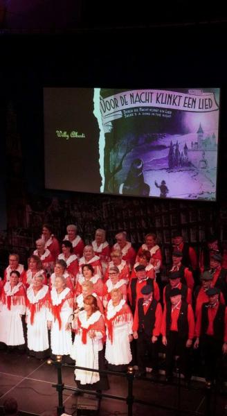 De zaal is vandaag extra bijzonder gevuld. De Grannies van Amsterdam zijn aanwezig, vergezeld door een cameraploeg van Omroep MAX. Maar onze speciale aandacht gaat vandaag uit naar het balkon, waar de familie zit van ons onlangs overleden koorlid Bert Bos.