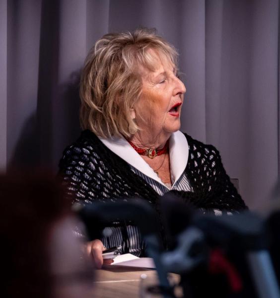 Mevrouw Jensch nam aan het eind van de voorstelling het woord en bedankte ons nog eens extra. Ze zei, dat de bewoners en zijzelf heel erg hadden genoten.